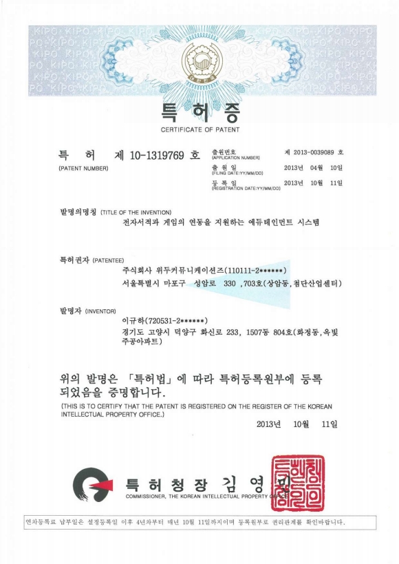 - Previous[Korea/Technical] A device for providing games linked to electronic books 19.06.04