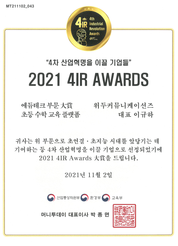2021 4IR AWARDS 대상 페이지 정보 작성자 WeDu 댓글 0건 조회 11,500회 작성일 21-12-31 13:01 본문 2021-11-02 2021 4IR AWARDS 대상 머니투데이 List Previous2021 소년한국 우수 어린이 도서 22.01.06 Next2020 소년한국 우수 어린이 도서 선정 21.12.31