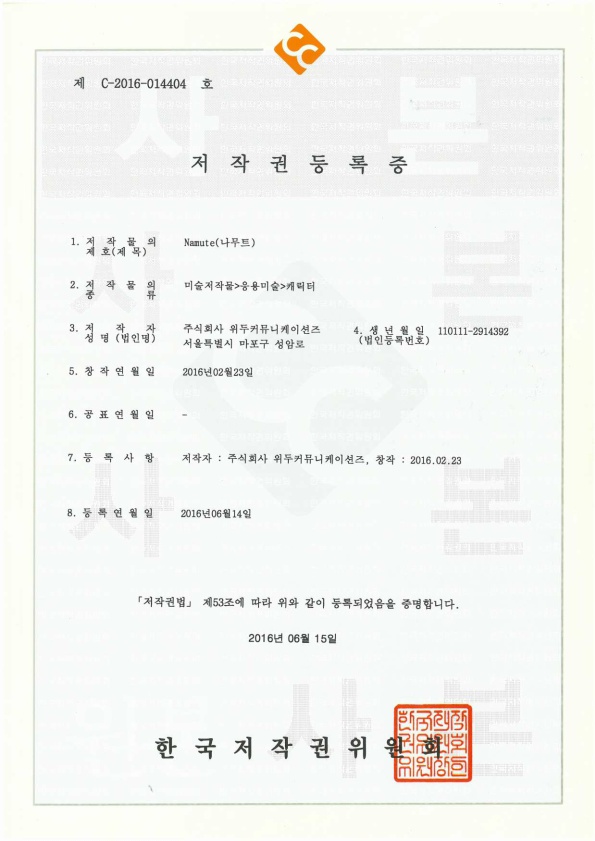 [한국/저작권] 나무트 페이지 정보 작성자 WeDu 댓글 0건 조회 6,781회 작성일 19-05-30 19:08 본문 2016-06-14 저작권 C-2016-014404 나무트 / 미술저작물>응용미술>캐릭터 List Previous[한국/저작권] 리안 19.05.30 Next[한국/저작권] 길리 19.05.30