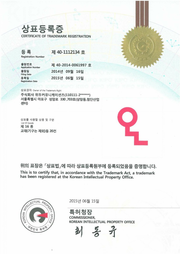 [한국/상표] OLL 16류 페이지 정보 작성자 WeDu 댓글 0건 조회 6,743회 작성일 19-05-30 18:59 본문 2015-06-15 상표 제 40-1112134호 16류 List Previous[한국/상표] OLL 41류 19.05.30 Next[한국/상표] OLL 09류 19.05.30